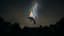 A surreal cinematic night scene in a quiet suburban street under a dark sky filled with soft stars and faint aurora-like light. A human figure slowly rises upward into the air above the houses in a calm, weightless motion, as if being gently lifted by an unseen force. From the body, powerful luminous rays and flowing beams of colored energy emerge upward into the sky, stretching above the figure in long radiant streams of turquoise, violet, gold, and soft green light. The ascent is slow and graceful, with the body slightly arched back and arms hanging naturally, while the beams continue to pour upward like spiritual light or cosmic fire. The houses and trees below remain dark and still, emphasizing the supernatural event in the sky. Dreamlike, mysterious, emotional, magical realism, slow levitation, glowing light trails, cinematic atmosphere, photorealistic, highly detailed, cinematic 4K.