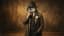 Cinematic surreal studio portrait of a man with a realistic fish head, dressed in an elegant vintage suit, trench coat, and fedora. He stands still against a warm moody backdrop and slowly touches his chin with one hand, as if deep in thought. His posture is calm, refined, and contemplative. The movement is minimal and deliberate, with only subtle hand and shoulder motion. The camera remains completely static. Soft dramatic lighting, rich brown background, vintage noir atmosphere, ultra detailed fish scales, realistic fabric textures, surreal fine art aesthetic, cinematic composition, film look.