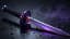 Cinematic product shot of a futuristic dagger lying still on a dark wet tabletop. The blade remains motionless while the camera moves in a smooth arc around it, slowly orbiting to reveal the reflective metal, engraved guard details, and glowing purple-blue highlights from different angles. Thin smoke drifts low across the table surface, sliding and curling around the dagger in soft flowing waves. Water droplets and small puddles on the table catch the colored reflections and shimmer subtly. Dark moody background, neon accent lighting, ultra detailed metal texture, realistic smoke motion, glossy reflections, dramatic luxury weapon aesthetic, cinematic composition, smooth camera movement, high contrast, film look.