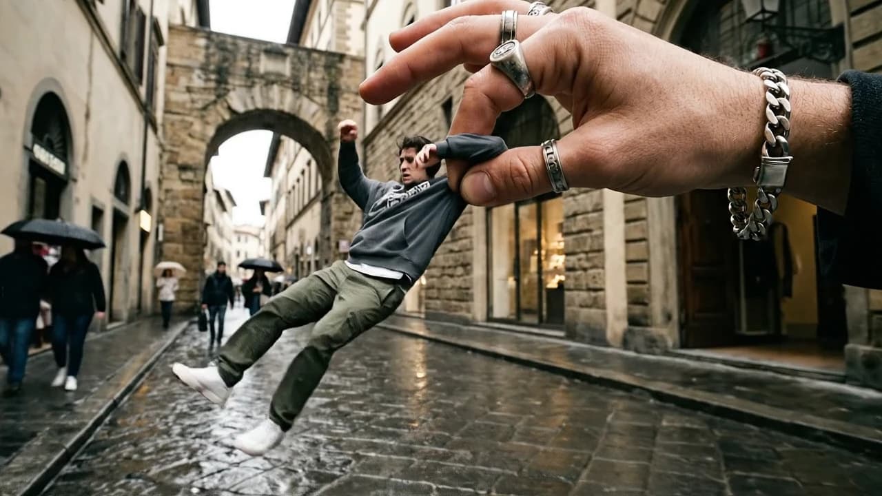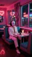 Cinematic neon diner scene at night. A mysterious person in a white clown mask sits alone at a booth table in a retro diner, surrounded by pink and blue neon light reflections. At the beginning of the shot, the character is facing slightly away. The camera slowly pushes in toward the table, moving closer with a smooth cinematic dolly-in. As the camera approaches, the person slowly turns their head toward the camera in a calm, deliberate, slightly unsettling motion. Rain streaks are visible on the windows, city lights glow outside, and the neon reflections shimmer softly on the glossy surfaces. Moody atmosphere, surreal retro-noir aesthetic, ultra detailed, cinematic lighting, smooth controlled motion, film look.