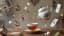 Cinematic surreal tea scene on a wooden table in a vintage interior. A porcelain teapot floats in midair and pours a smooth stream of hot tea into a delicate teacup below. Around the teacup, everything levitates in the air: playing cards, pocket watches, sugar cubes, spoons, a small key, and loose tea leaves drifting weightlessly at different heights. The tea stream flows continuously and naturally, creating gentle ripples in the cup. All floating objects move subtly in the air as if suspended by invisible magic. Warm soft lighting, cozy dreamy atmosphere, realistic liquid motion, elegant porcelain reflections, ultra detailed, whimsical fantasy aesthetic, cinematic composition, magical still-life mood.
