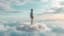 Cinematic surreal sky scene. A man stands still on a soft floating cloud high above the world, calm and motionless, facing slightly to the side. The camera rapidly flies toward him, moving from a wide atmospheric shot into a dramatic close-up of his face. Around him, the surrounding clouds slowly drift and flow through the sky, creating soft layered motion in the background. Gentle sunlight, airy atmosphere, realistic cloud movement, subtle fabric motion on the hoodie, peaceful yet epic mood, ultra detailed, cinematic lighting, dreamy film look, smooth forward camera movement.