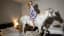 Cinematic surreal interior scene. A young woman sits gracefully on a white horse inside a quiet bedroom while the horse slowly walks forward with calm, steady steps. The woman remains elegant and composed, posing confidently as her hair and silky robe move softly with the motion. The horse moves carefully through the room, its mane and tail swaying naturally, hooves stepping gently across the floor between the beds. Warm lamplight mixes with soft shadows, creating an intimate, dreamlike atmosphere. Realistic horse movement, subtle body sway of the rider, flowing fabric, cinematic lighting, ultra detailed, surreal editorial aesthetic, film look.